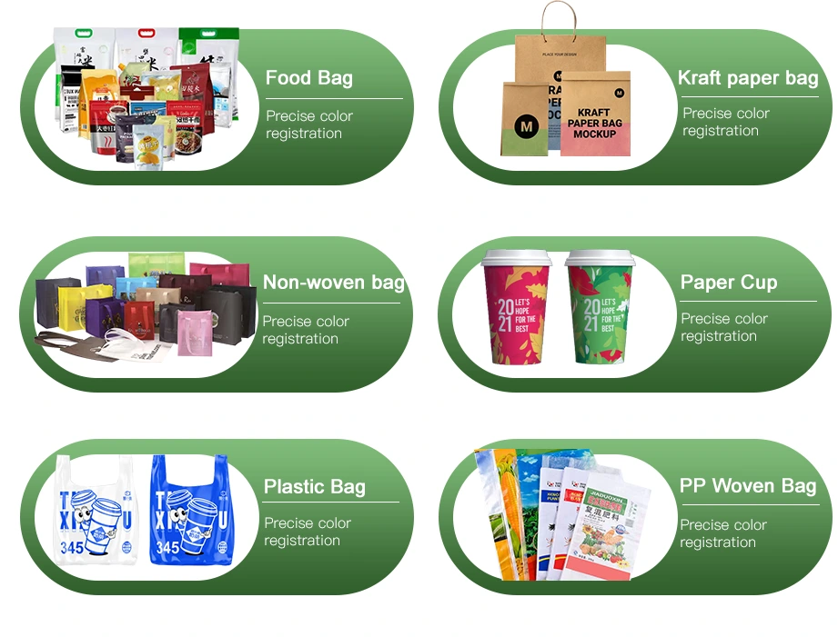 Grønn ohm gir stabil høyhastighetsdrift og presis fargeregistrering, noe som sikrer konsistent utskriftskvalitet for ulike papirposeapplikasjoner. I mellomtiden maksimerer dens holdbare konstruksjon og brukervennlige design produktiviteten samtidig som driftskostnadene holdes lave.